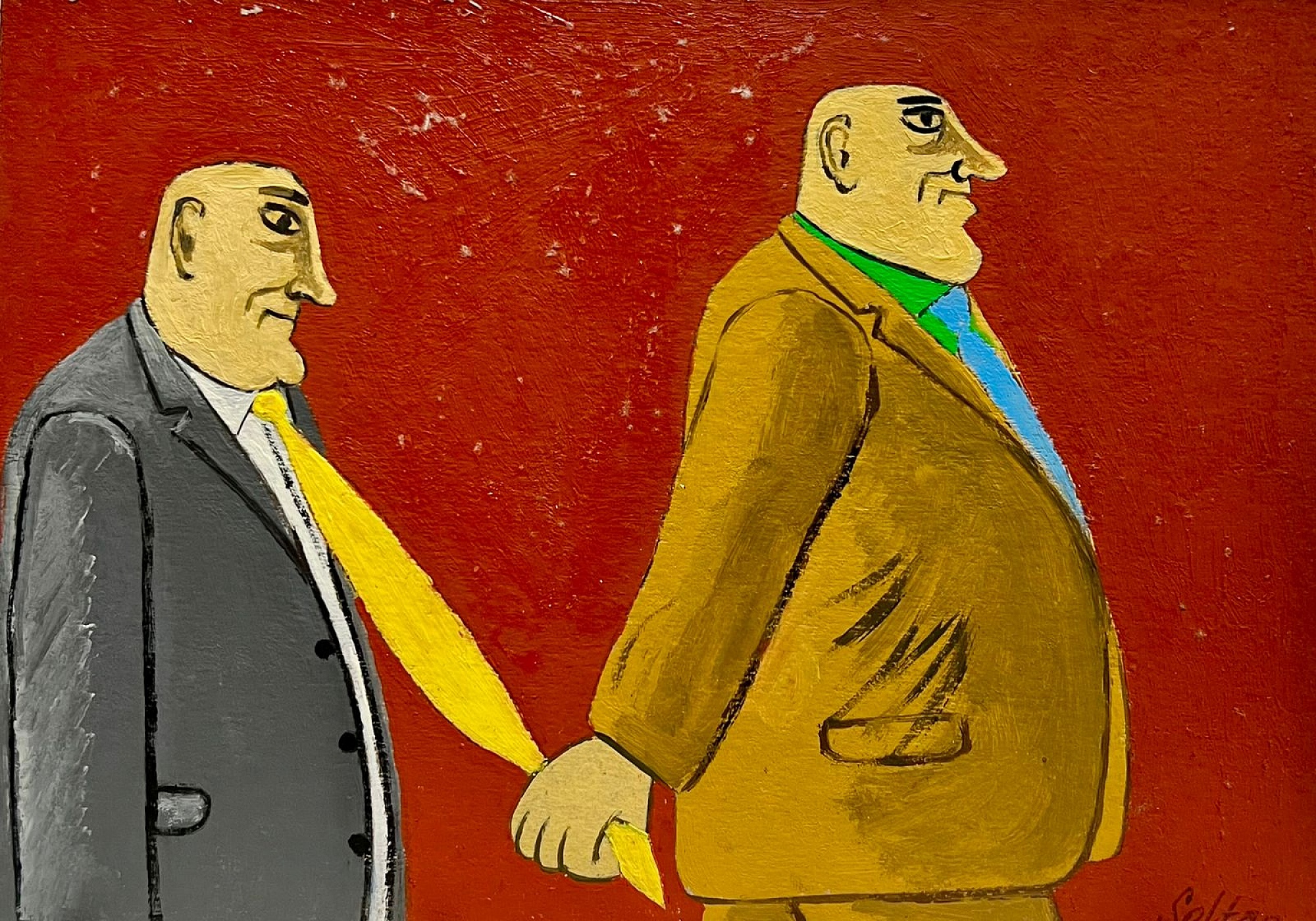 İki kişi və qırmızı fon